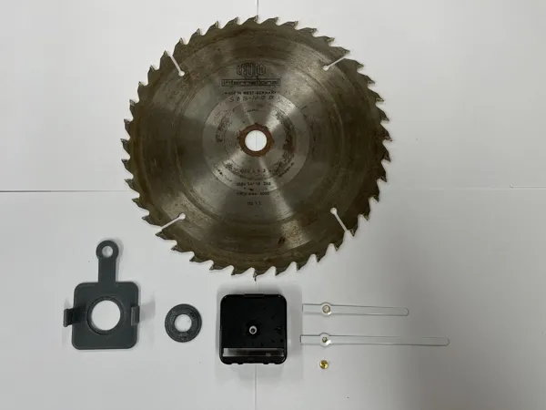 It would seem that every respectable woodworking shop has a wall clock in the form of a sawblade. I have a very old sawblade from West Germany that I do not dare to use for security reasons. It is quite unique, and I think it would be a waste to just throw it out. So I made it into a wall clock.